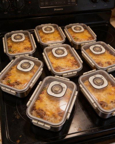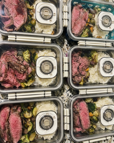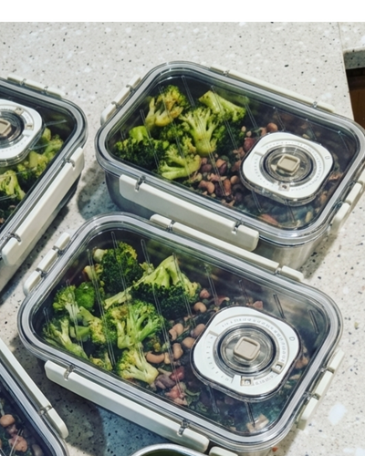 Prepare your meals as you normally would for the week, place them into Preserva containers, and vacuum seal the lid. By removing air before storage, Preserva helps keep your food fresh, flavorful, and protected from drying out or absorbing fridge odors. When you’re ready to eat, simply open and reheat — your meals stay tasting close to day one throughout the week.